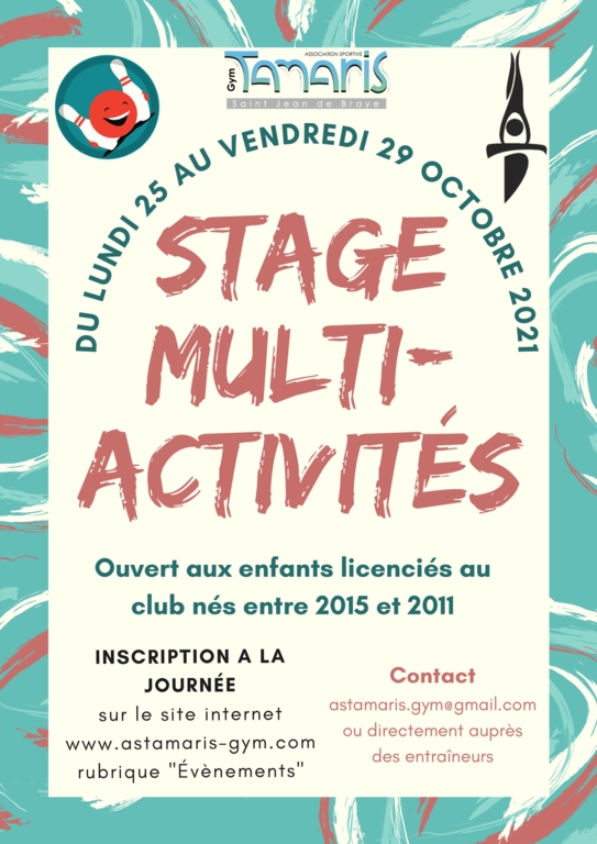 Le club de l'AS TAMARIS organise des journées multi-activités du lundi 25 au vendredi 29 octobre 2021 pour les enfants adhérents au club nés entre 2015 et 2011.