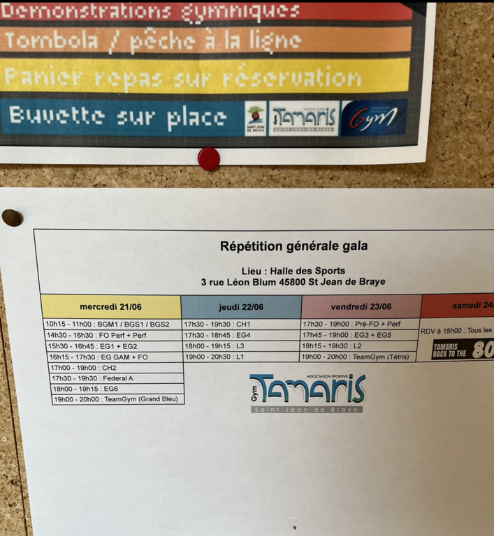 Attention changement de lieu pour les répétitions générales, préparatoires à la fête du club
