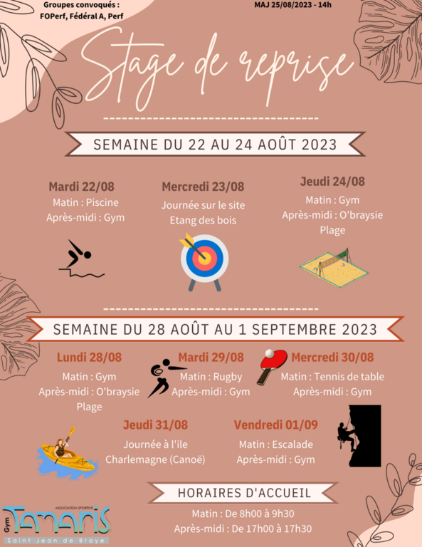 Stage de reprise réservé aux groupes FOPerf, Fédéral A et Perf